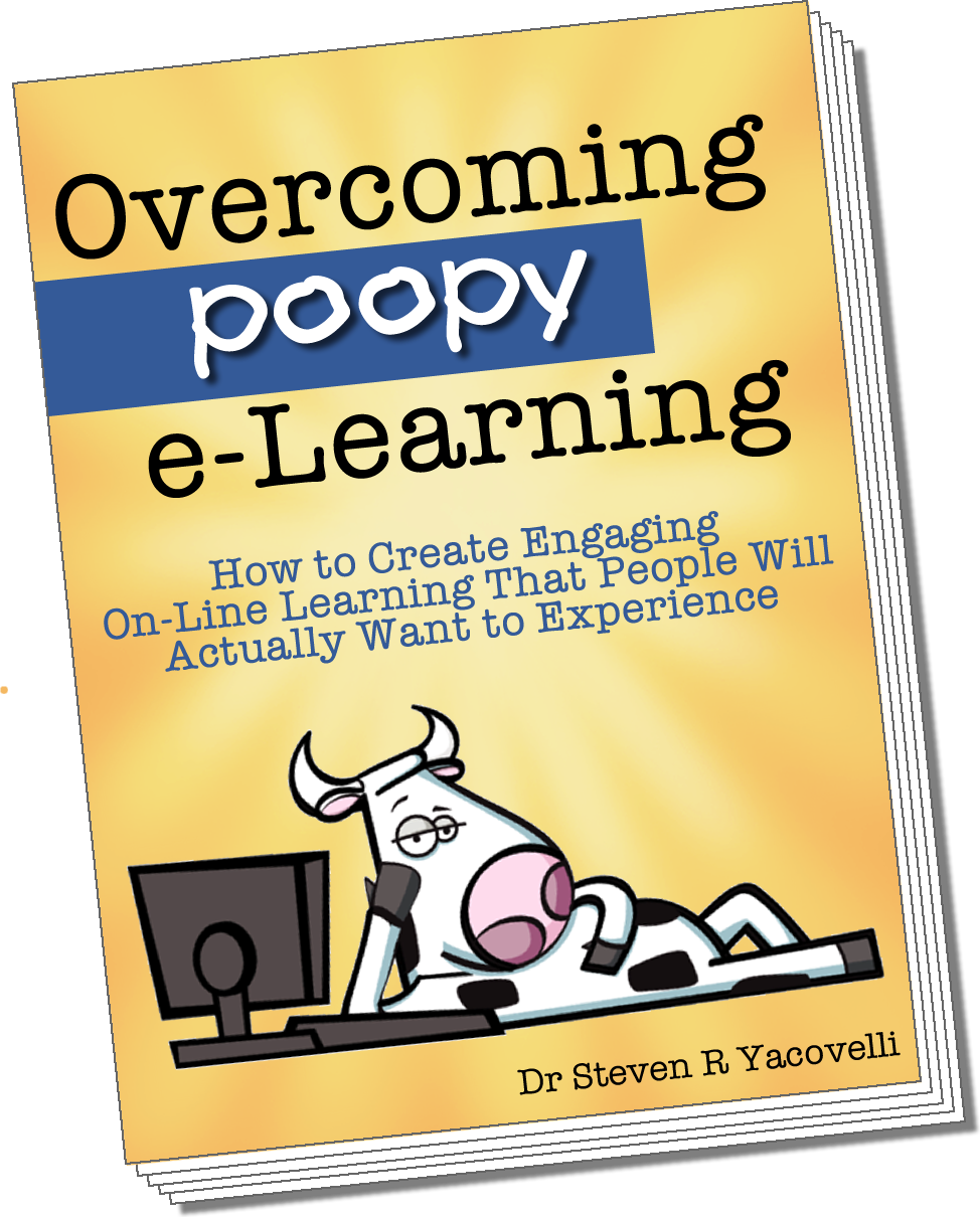 Well that didn’t do the “e” cause (nor the learners) much good, causing both corporate and academic worlds to be a bit fearful of Web-based training. Ask any employee or college student to take an online course and what is usually their response? Exactly. While some folks are awesome at creating engaging, captivating online instruction, for every one great course there seems to be 1,000 “not so good” examples of e-learning. And all of this bad stuff gives those “good ones” – and the field in general – a bad rap.